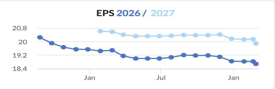 • Cost discipline: Operating expenses declined 4% in FY2025 having already fallen 9% in 2024. The cost control culture is strong here through re-engineering and efficiency initiatives, demonstrating management’s ability to offset gross margin pressure and benefit from reduced staffing costs (-11% in ’25) in the AI era. Mgmt are now guiding for relatively flat costs in ’26 ie.some low hanging fruit re people costs has already been picked